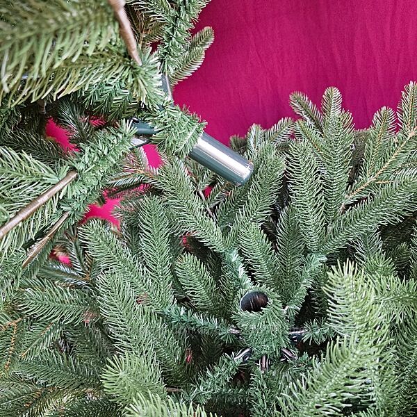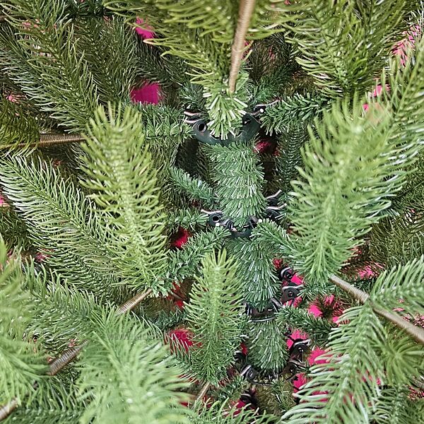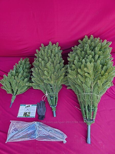 Це зручна та надійна модель — ялинка на шарнірах, яка сама розкладає гілки; потрібно лише розправити відростки.