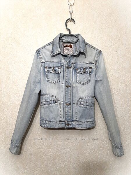 Стильна джинсова куртка, джинсовка жіноча блакитна, з кишенями, довгі рукави.Бренд Silvian Heach, Італія.