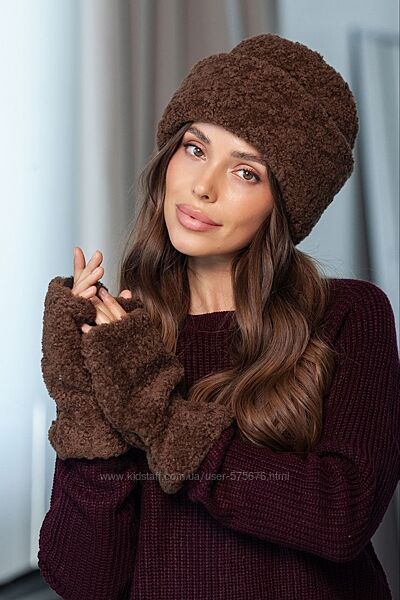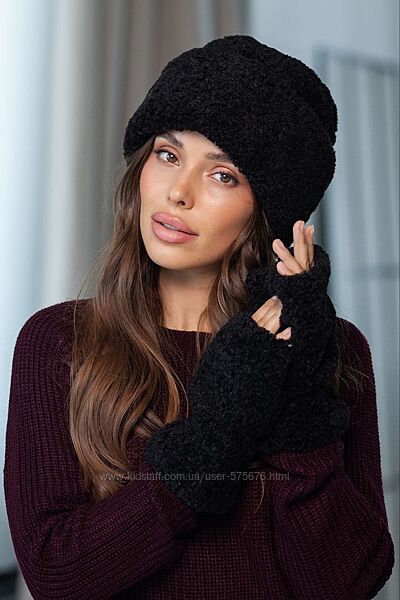 Комплект з еко хутра тедді люкс шапка та мітенкиЦіна 735грн