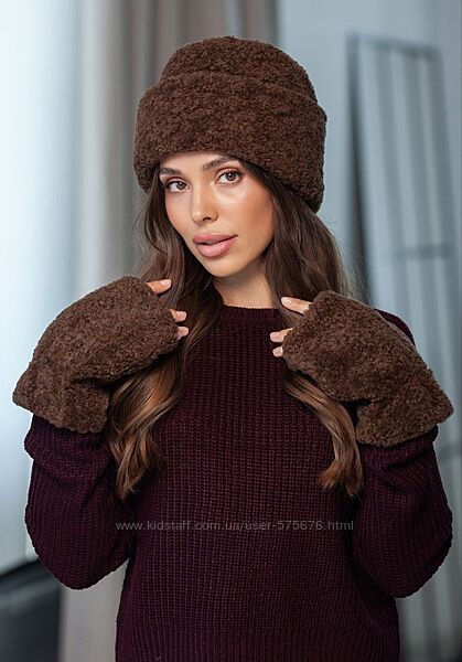 Комплект з еко хутра тедді люкс шапка та мітенкиЦіна 735грн
