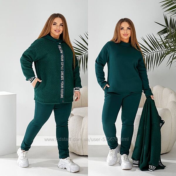 Подробное описание: р.48 до 58р. Костюм трійка тринитка на флісі, куртка з тедді, світшот та шт