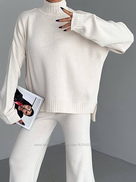 Гарний костюм з трикотажуОб´ємний верх із широкими брюками з еластичною вставкою у поясі.