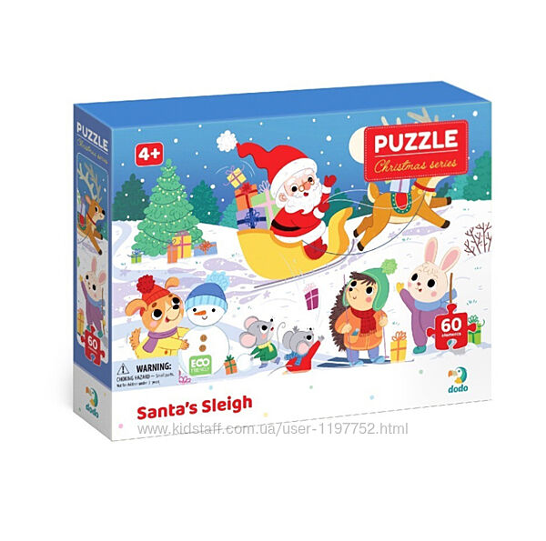 Пазл Dodo «еСанчата Санти» – це частина святкової колекції пазлі, створена спеціально для малят від 4 років. Збираючи цей пазл на 60 елементів, діти поринуть у чарівний світ різдвяного настрою.Головним героєм пазлу є веселий Санта, який мчить на своїх санчатах посеред засніженого лісу, готовий доставити радість та подарунки кожній дитині та навіть звірятам.