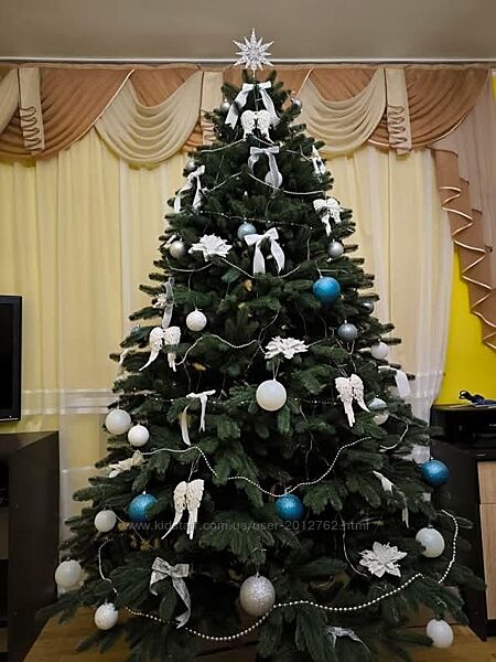 Пишна та красива ялинка з прямими голочками і густими гілочками, максимально схожа на живу.