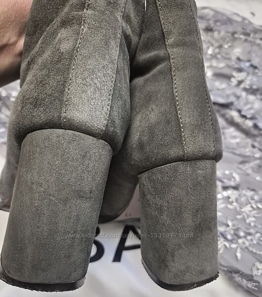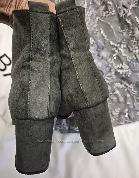 modern-натуральний сірий замш, дуже вишукані і комфортні. каблук взагалу не відчувається при ходьбі. в ідеальному стані, взувались раховані рази -під них є святковий костюм-на фото спідниця від набору-кому цікаво-пишіть-скину фотозсередини утеплені-піде на холодне демі і невеликий мінус