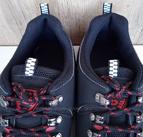 Матеріал: зовні штучна шкіра і міцний взуттєвий текстиль, всередині текстиль мембранного типу для спортивного взуття, на задниках і язичках є поролонова підкладка. Устілки виймаються, текстильні, достатньо м´які і пружні.