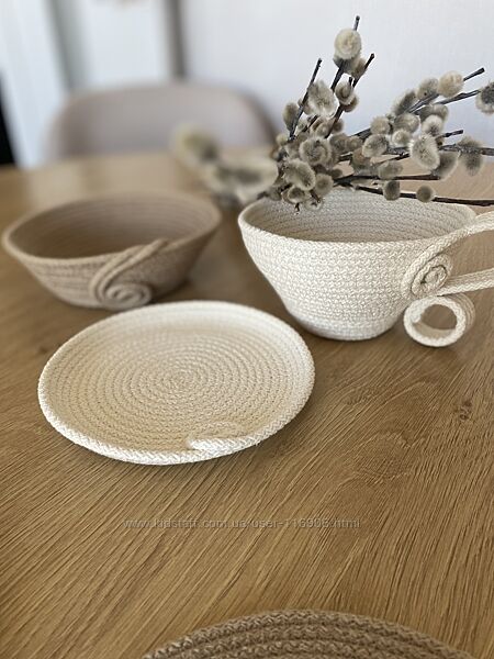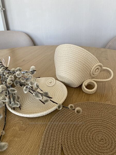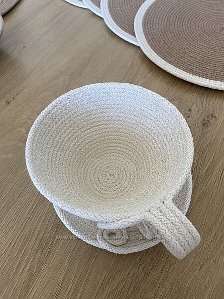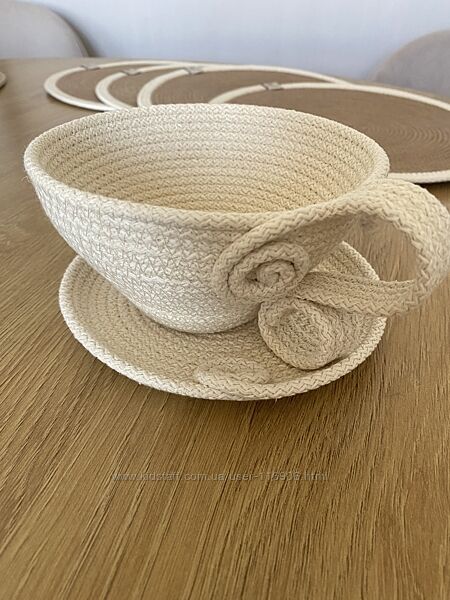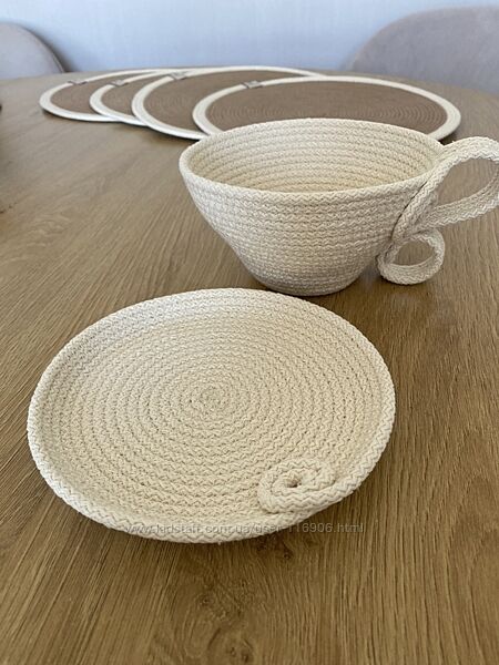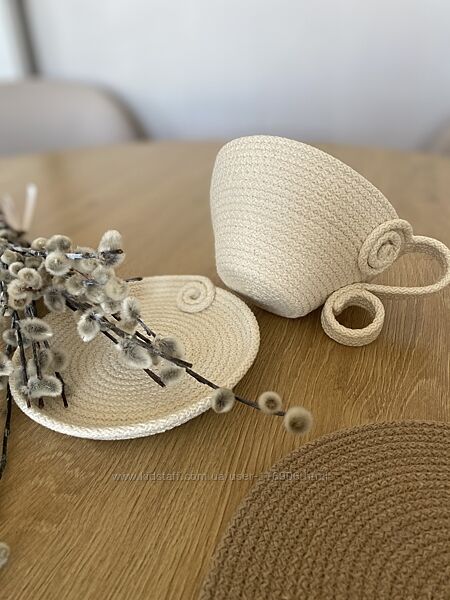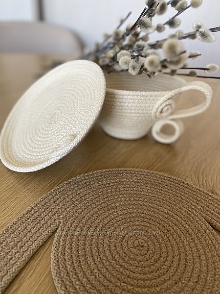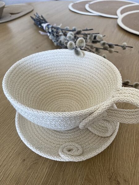 Подробное описание: Чашка -Цукерниця з блюдцем з бавовняного шнура
