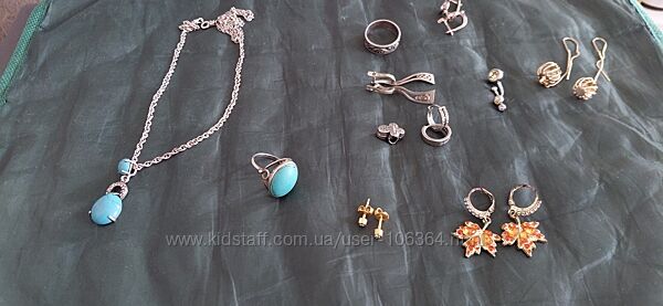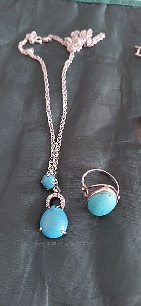 Подробное описание: Каблучка , сережки з срібла, бірюза, бурштин