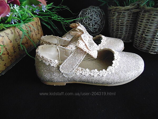 Казкові золотисті туфельки Kelsi 29 размір, по устілці 19 см.