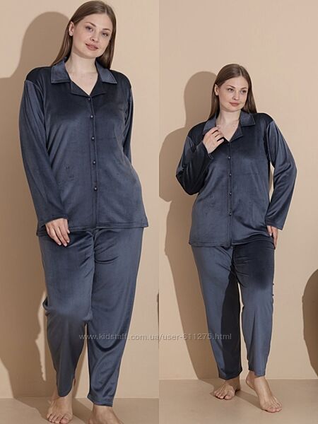 Подробное описание: Жіноча велюрова піжама на гудзиках Туреччина велюр плюш розміри XL-4XL