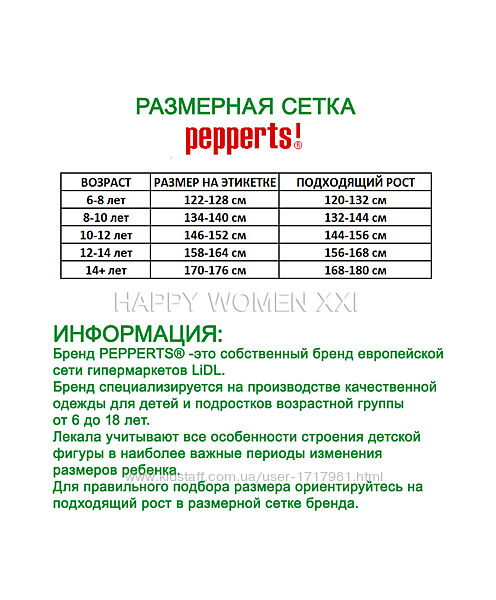 Размеры бренда учитывают средние показатели: прежде всего рост, затем возраст.