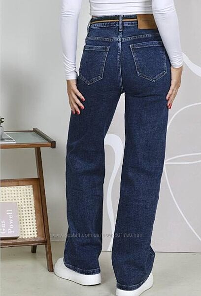 Джинси труби у темно-синьому кольорі, утеплені байкою.Джинси труби це модель у прямому широкому пошитті.