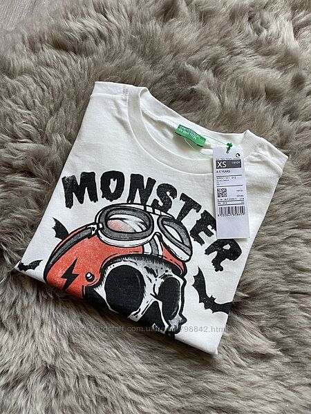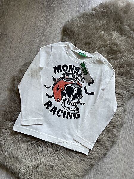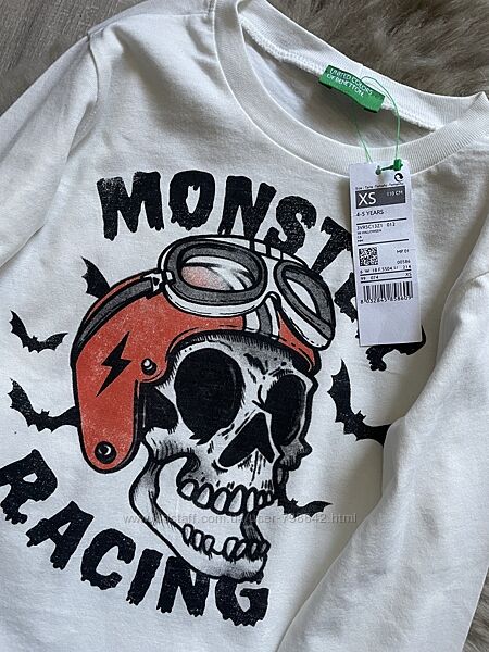 Дитячий лонгслів United Colors of Benetton з принтом череп в гоночному шоломі.Зазначений вік 4-5 років, зріст 110 см.