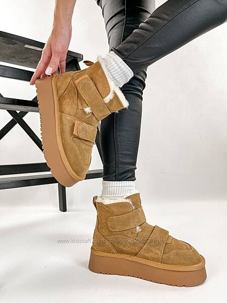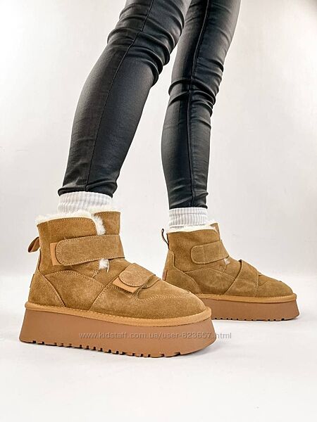 Подробное описание: Замшеві уггі на липучках Кємел рижі