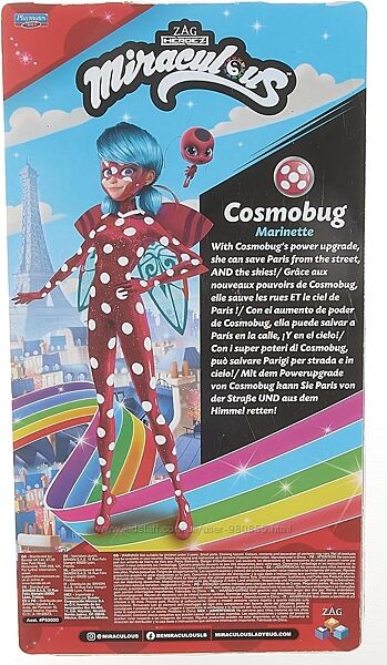 Марінетт прийме свою таємну супергеройську особистість з цією лялькою Космобаг, щоб врятувати становище разом з Котом Нуаром, Тіккі та всіма їхніми іншими друзями