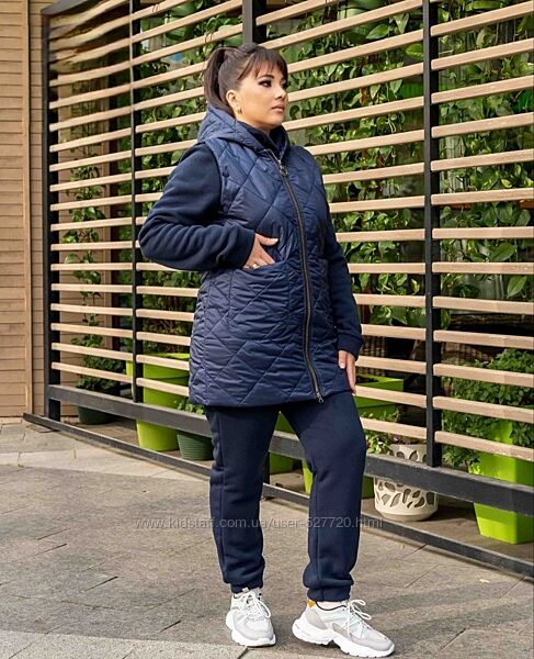 Подробное описание: Жіночий прогулянковий костюм-трійка, жилет, худі, штани, не утеплений 52/62