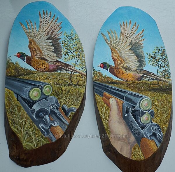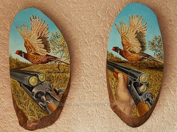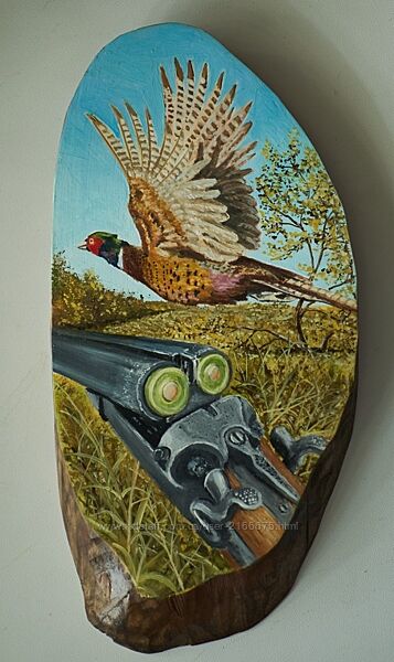 Картина Охота на фазана. Картина на дереве. Подарок охотнику
