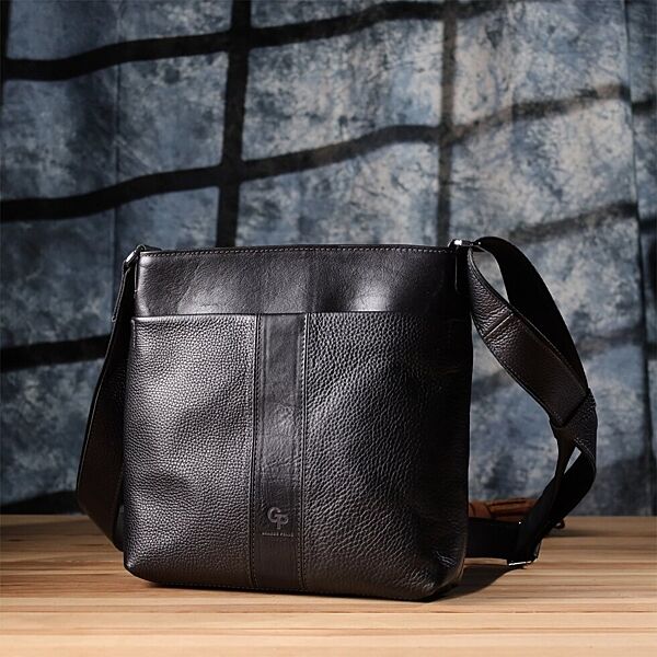 Красива сумка через плече для чоловіків із натуральної шкіри 722883 Чорна