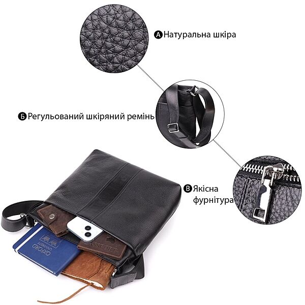 Подробное описание: Красива сумка через плече для чоловіків із натуральної шкіри 722883 Чорна
