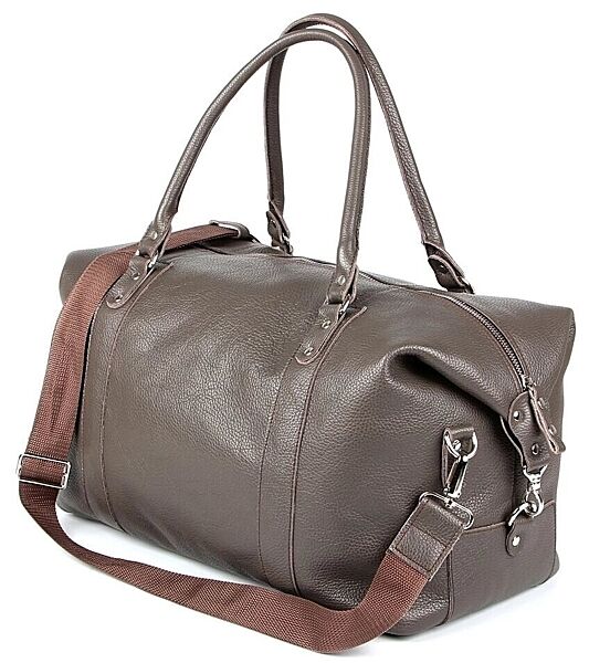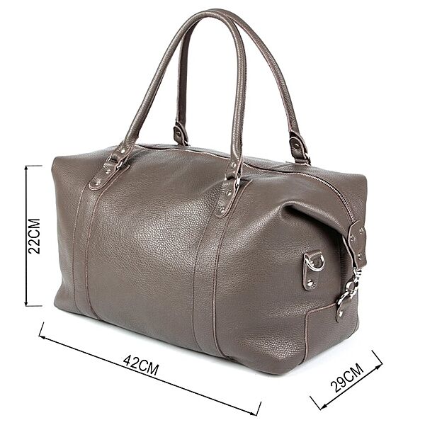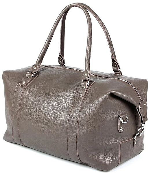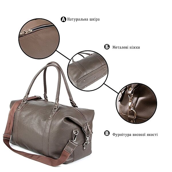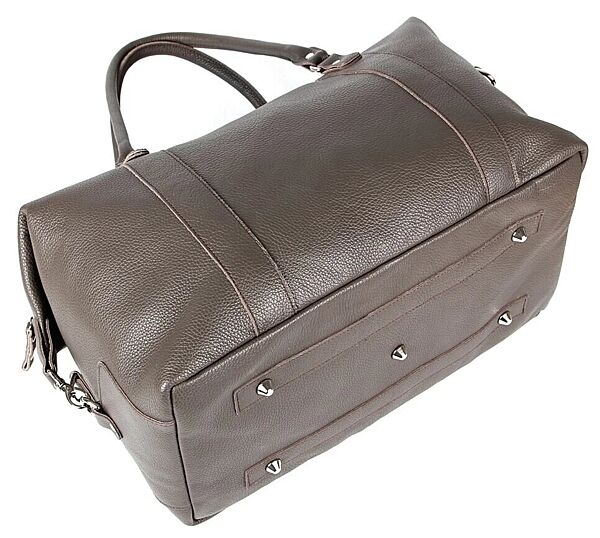 Надміцна дорожня сумка з натуральної високоякісної шкіри. Аксесуар виконаний в сірому кольорі. Колір фурнітури: срібло. Дно сумки захищене металевими ніжками. Виріб може бути використано для нетривалого вікенду або походу в спортзал. Аксесуар упакований в текстильний пилозахисний чохол.