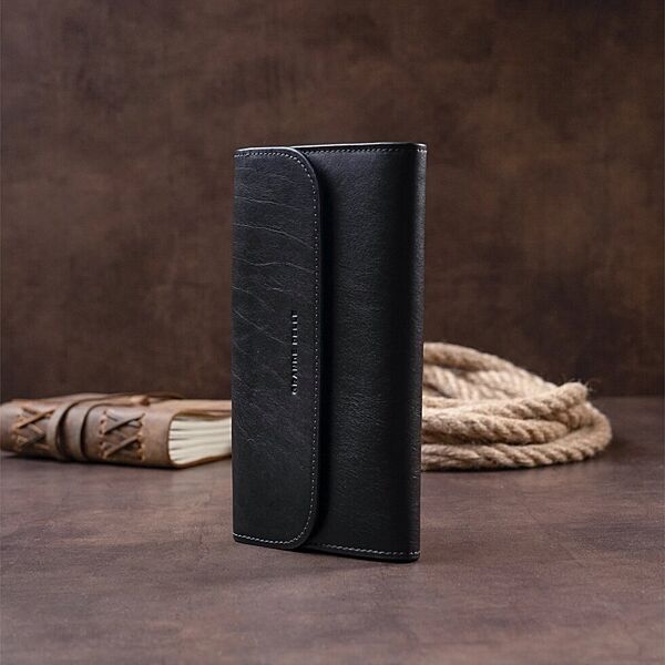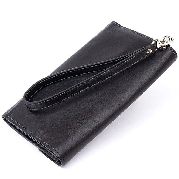 Горизонтальна барсетка-клатч чоловіча в гладкій шкірі 711298 Чорна