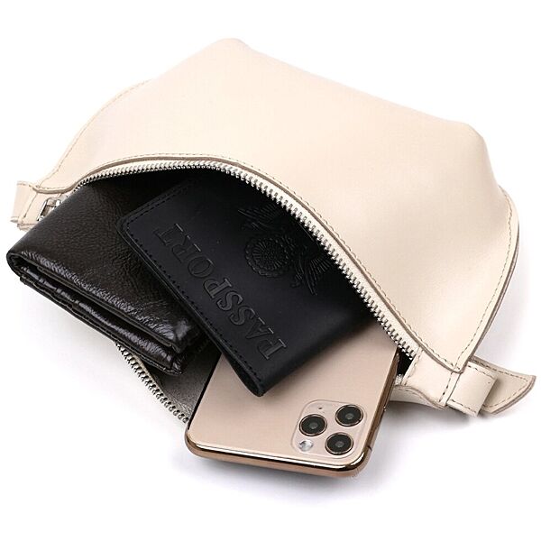 Стильна жіноча бананка із натуральної шкіри 716391 Бежевий