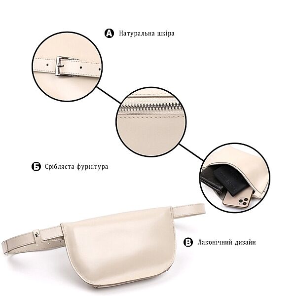 Подробное описание: Стильна жіноча бананка із натуральної шкіри 716391 Бежевий