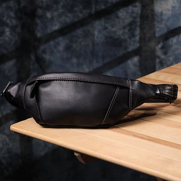 Чоловіча сумка-бананка з натуральної гладкої шкіри 723125 Чорний