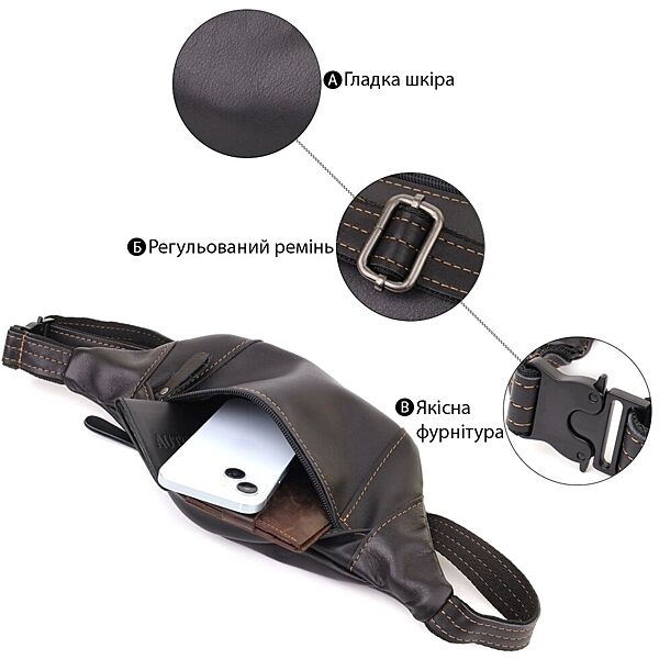 Подробное описание: Чоловіча сумка-бананка з натуральної гладкої шкіри 723125 Чорний