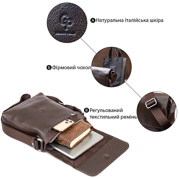 Подробное описание: Сумка месенджер в гладкій шкірі 711334 Шоколадна