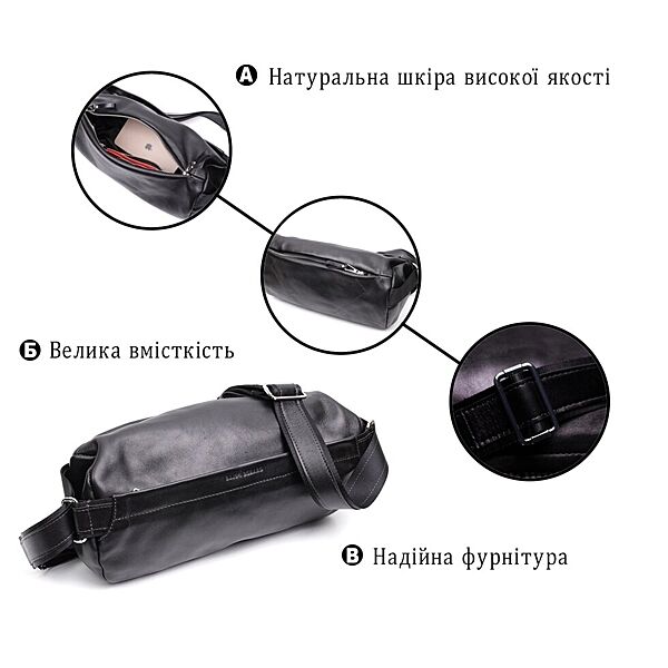 Подробное описание: Оригінальна сумка через плече з натуральної шкіри 711649 Чорна