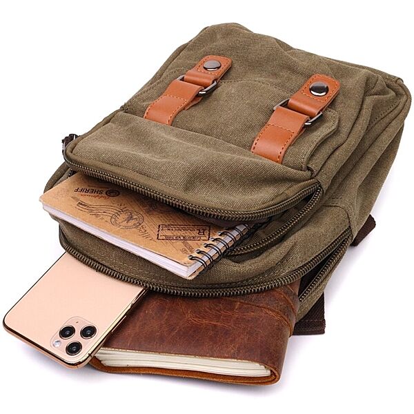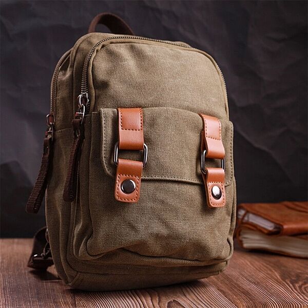 Сумка-рюкзак у стилі мілітарі з двома відділеннями із щільного текстилю722163 Оливковий