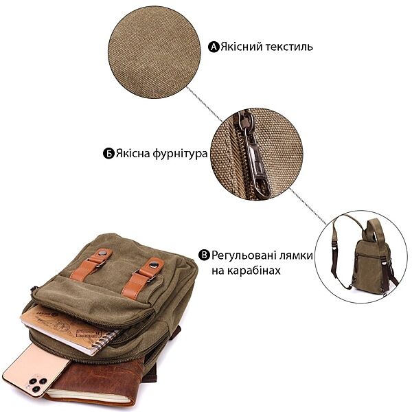 Подробное описание: Сумка-рюкзак у стилі мілітарі з двома відділеннями із щільного текстилю722163 Оливковий