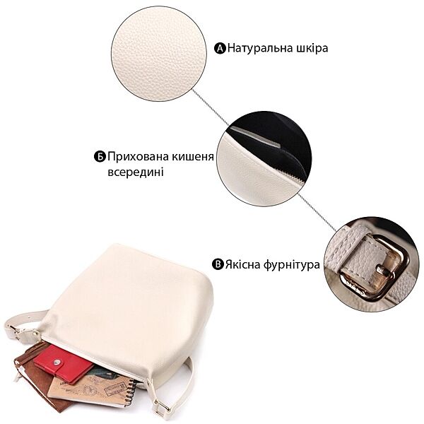Подробное описание: Зручна жіноча сумка з однією довгою ручкою із натуральної шкіри722307 Біла