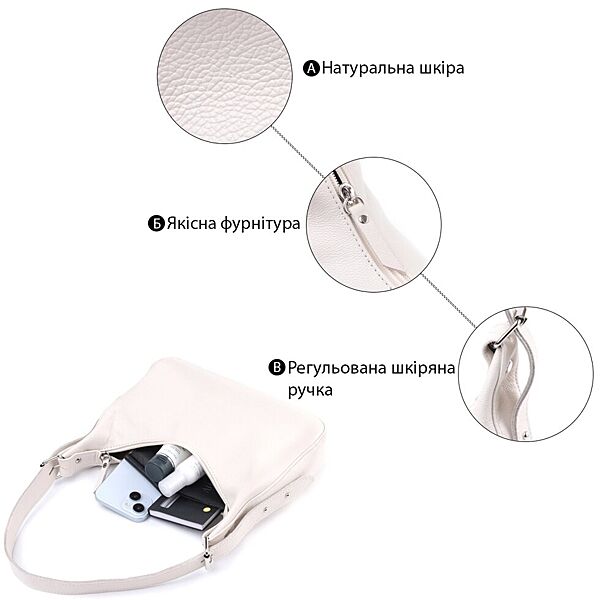 Подробное описание: Сумка багет з регульованим ременем з натуральної шкіри 722831 Бежева