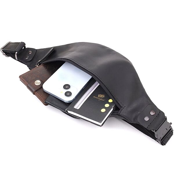 Чоловіча бананка з натуральної вінтажної шкіри 723129 Чорний