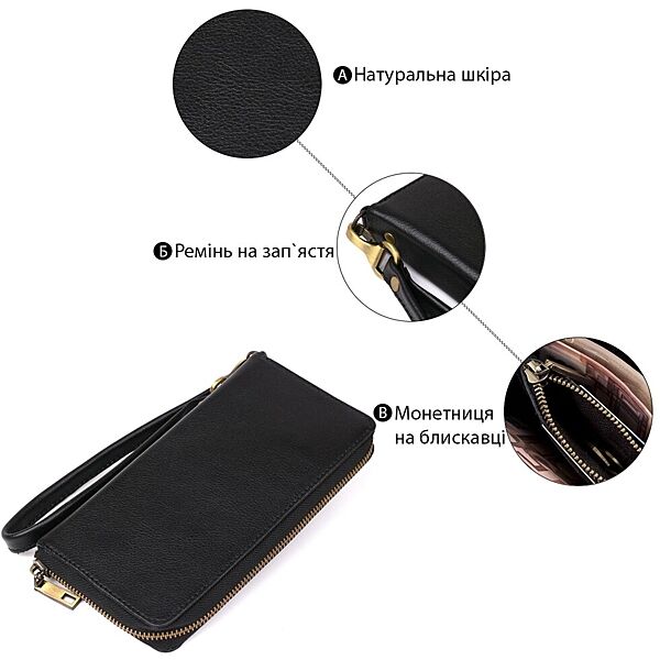 Подробное описание: Чоловічий горизонтальний шкіряний клатч 719123 Чорний