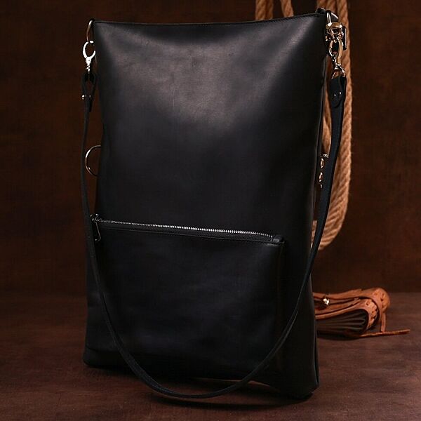 Жіноча сумка у цікавому небанальному дизайні від українського виробника. Матеріал виготовлення – натуральна шкіра з відмінними показниками міцності та стійкості до різноманітного зносу. Колір сумки - універсальний чорний, фактура - гладка матова. Внутрішнє відділення дуже просторе та містке, на зовнішній стороні є накладна невелика кишеня. ОПЛАТА та ДОСТАВКА: накладний платіж (передоплата 200 грн, залишок при отриманні посилки) або повна оплата на картку. Терміни відправлення 1-3 робочих днів.