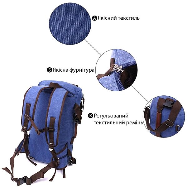 Подробное описание: Функціональний рюкзак-трансформер у стилі мілітарі із щільного текстилю722159 Синій