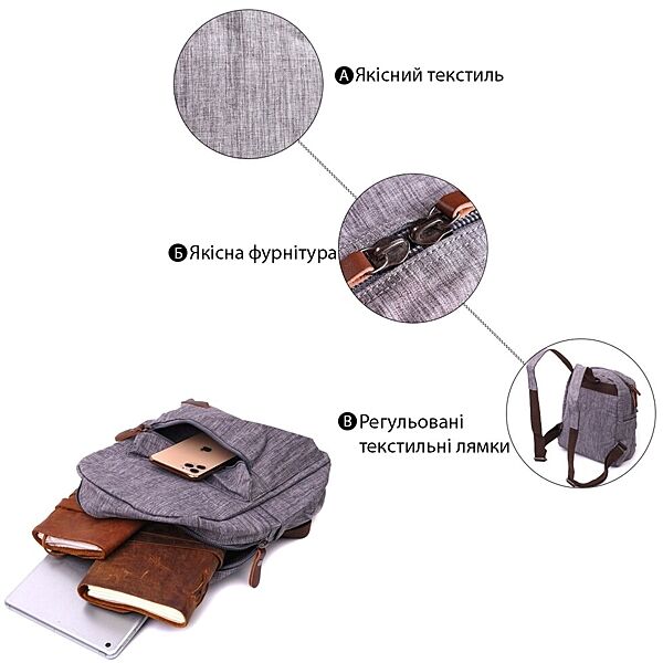 Подробное описание: Чудовий рюкзак чоловічий з текстилю722240 Сірий