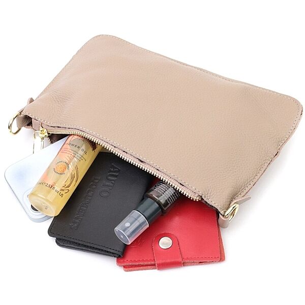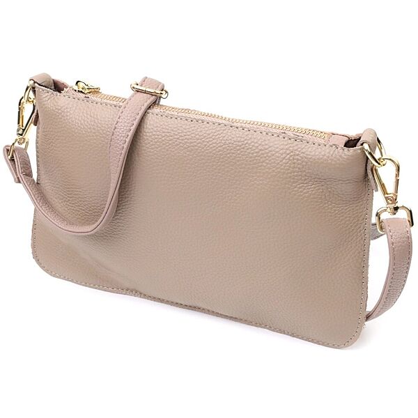 Жіноча сумка-клатч з двома ременями з натуральної шкіри722643 Бежева