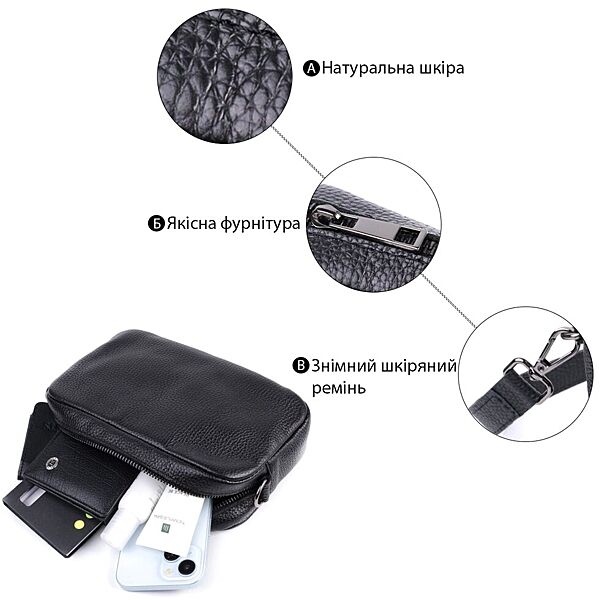 Подробное описание: Класична сумка крос-боді із зернистої натуральної шкіри 722842 Чорна