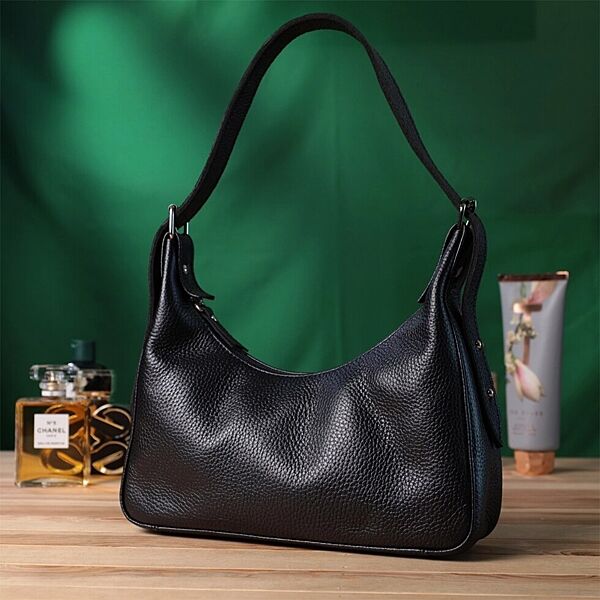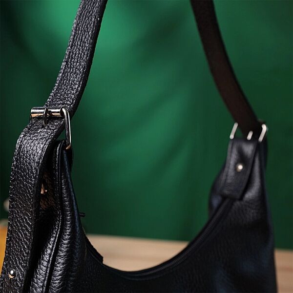 Подробное описание: Сумка багет з регульованим ременем із зернистої натуральної шкіри 722833 Чорна