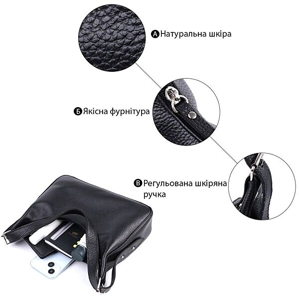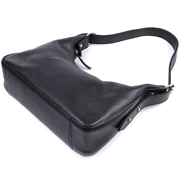 Сумка багет з регульованим ременем із зернистої натуральної шкіри 722833 Чорна