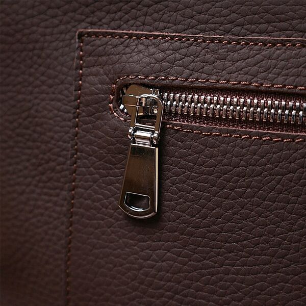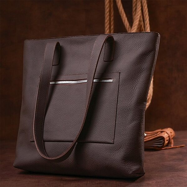 Чудова сумка для жінок, які віддають перевагу просторим та містким аксесуарам. Колір цієї моделі - матовий коричневий, фактура - зерниста і дуже приємна на дотик. Виконано сумку з високоякісної натуральної шкіри з відмінними характеристиками. Основне відділення закривається на блискавку. На зовнішній стороні є невелика кишеня на блискавці для швидкого доступу до її вмісту. ОПЛАТА та ДОСТАВКА: накладний платіж (передоплата 200 грн, залишок при отриманні посилки) або повна оплата на картку. Терміни відправлення 1-3 робочих днів.