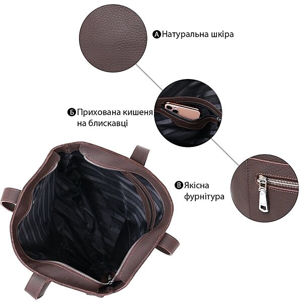 Подробное описание: Шкіряна матова жіноча сумка 716363 Коричневий