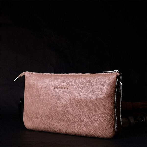 Чарівний жіночий клатч із натуральної зернистої шкіри 711698 Пудровий