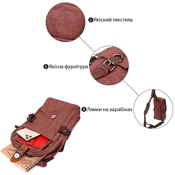 Подробное описание: Плечева сумка для чоловіків із щільного текстилю722186 Коричневий