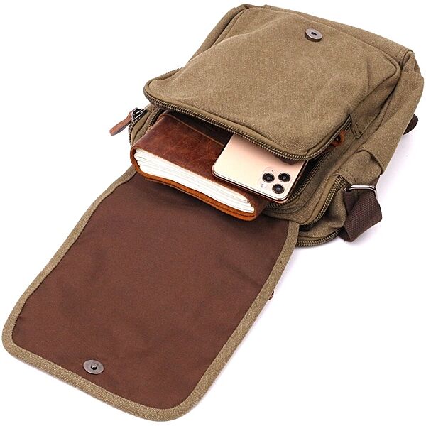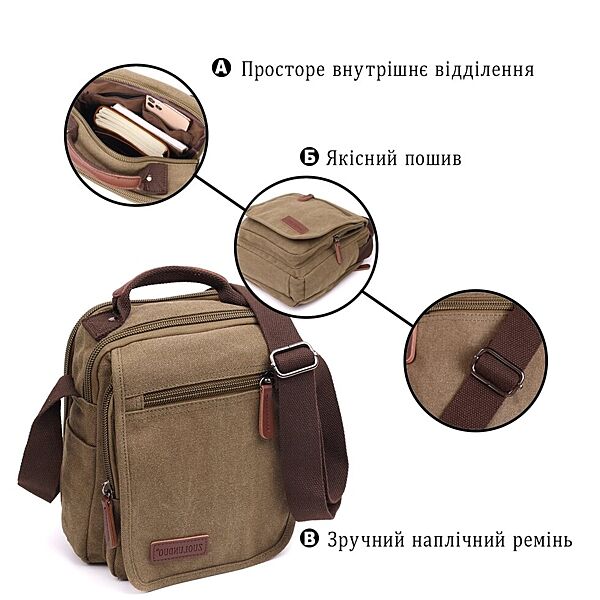 Подробное описание: Сумка листоноша на плече із щільного текстилю722228 Оливковий