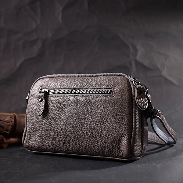 Сумка жіноча на два відділення з натуральної шкіри722278 Сіра